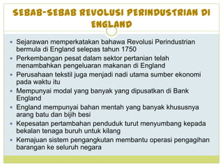 Sebab Sebab Berlakunya Revolusi Perindustrian Di England